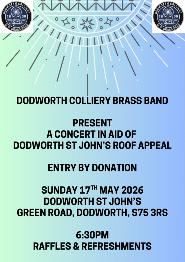 Dodworth Colliery Brass Band are supporting St. John’s Church in Dodworth, in aid of their mission to repair the damaged building.